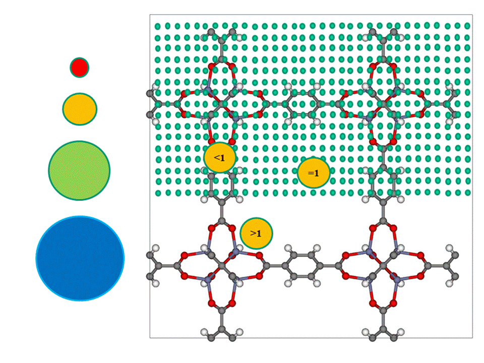 Aiming at both, the transferability of our model and the reduction of the training data set, we introduce 2 different classes of descriptors, based on fundamental chemical and physical properties: Atom Types [1] and Atom Probes [2] (figure). The main difference from previous models is that our descriptors are based on the chemical character of the atoms which consist the skeleton of the materials and not their general structural characteristics. With this bottom up approach we go one step down in the size of the descriptors employing chemical intuition.